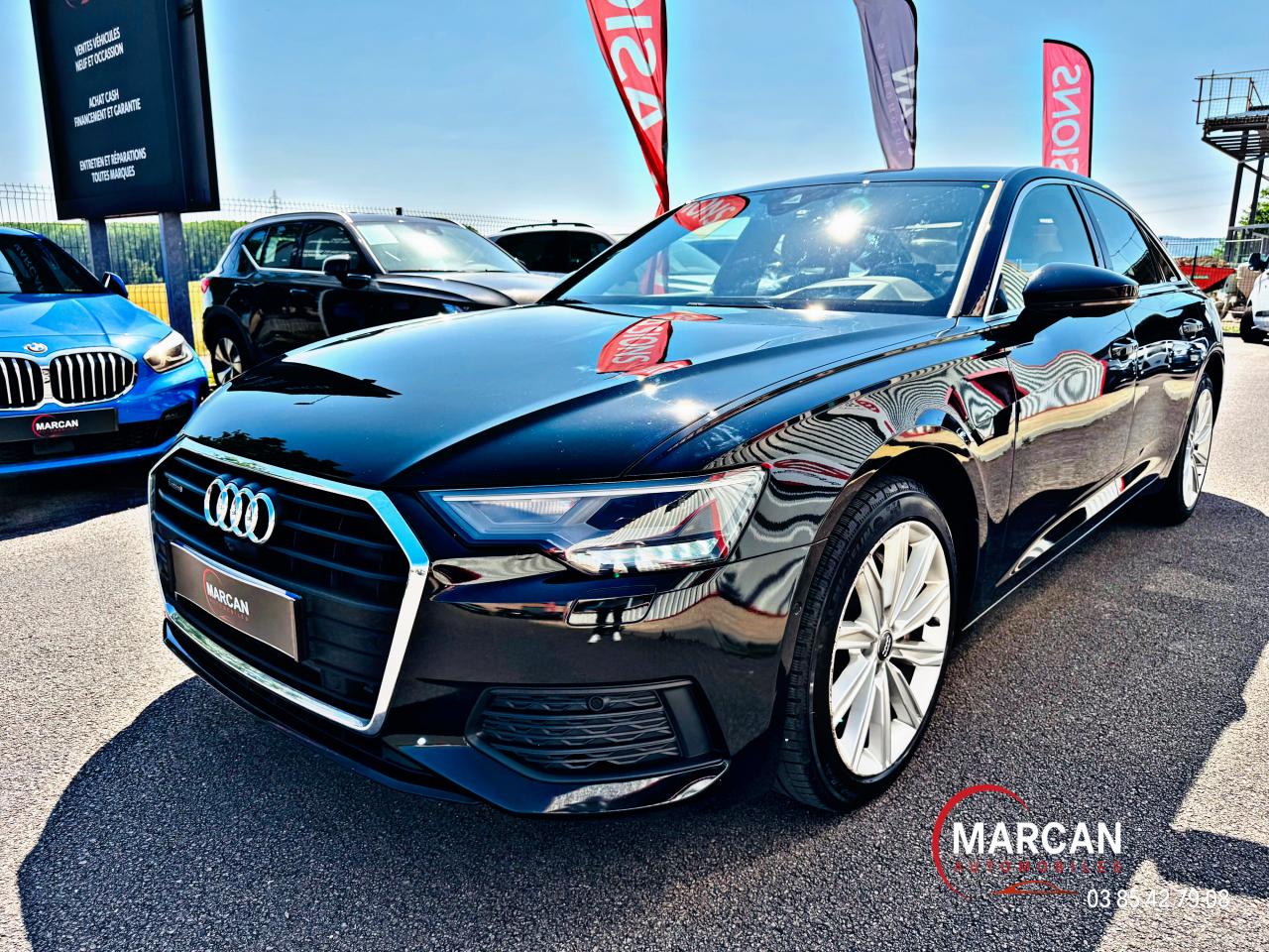 Accoudoir central confort à l'avant avec inclinaison réglable et coulissant en longueurAffichage du contrôle de la pression des pneumatiquesAirbags latéraux à l'avant et système d'airbags de têteAppel d’urgence et service Audi connect incluant commande du véhiculeApplications décoratives en laque fine gris graphite métal sur le tableau de bord, les contre-portes et la console centrale ; incluant inserts style aluminiumAppuie-tête pour sièges avant réglables manuellement en hauteurAudi connect avec carte SIM intégrée (e-SIM) et licence d'utilisation pour 3 ansAudi Drive SelectAudi music interface (avant et arrière)Audi Parking System PlusAudi pre sense basicAudi pre sense frontAudi smartphone interfaceAugmentation de la capacité du réservoir d'AdBlue à 24 litresAvertisseur de franchissement de ligneBanquette arrière 3 places "40/20/40"Buses de lave-glace chauffantesCaméra multifonction pour système d'assistance à la conduiteCapot de coffre à ouverture automatiqueCeintures de sécurité AV réglables en hauteurChâssis pour un confort de conduite accru avec une excellente dynamiqueCiel de pavillon en tissu Argent lunaireClé à fréquence radioClimatisation automatique bi-zoneCommande de désactivation d'airbag passager avantDirection progressiveEclairage intérieurEcrous de roues antivol et indicateur de desserrage d’écrousFeux arrière à technologie LEDFixation pour sièges enfants ISOFIX et Top Tether pour les places arrière extérieuresGilet, triangle et trousse de secoursIdentification du modèle avec inscription de la puissance/technologieInterface BluetoothJantes forgées légères en aluminium style 10 branches 7,5 J x 17" avec pneus 225/60 R 17Motorisations avec technologie hybride léger (Mild Hybrid)Moulures de seuil avec insert en aluminium à l’avant et à l’arrièreNavigation MMI avec MMI touch responseOutillage de bord et cricPack Extérieur BrillancePack Non fumeurPack RangementPare-Brise feuilleté AthermiquePeinture vernie Noir BrillantPréparation pour crochet d'attelageProjecteurs Full LEDProtection antidémarrage électroniqueRéception radio numériqueRégulateur et limiteur de vitesseRéservoir de carburant à capacité étendue (73 litres)Rétroviseur extérieur s'inclinant vers le sol en marche arrière côté passagerRétroviseur intérieur à position nuit automatique, sans encadrementRétroviseurs extérieurs couleur carrosserieRétroviseurs extérieurs électriques avec clignotants à LED intégrés, dégivrants et rabattables électriquementSellerie tissu EffetServices en ligne Audi connect pour Navigation et InfotainmentSet de réparations pour pneusSièges normaux à l’avantSystème audiophonique AudiSystème d'information du conducteur avec écran couleur haute résolution de 7"Touches de commande de couleur noir matVitres athermiques sur les côtés et à l’arrière lunette arrière dégivrante, avec minuterieVolant en cuir à branches doubles avec multifonction et palettes de changement de vitesses avec inserts en aluminium