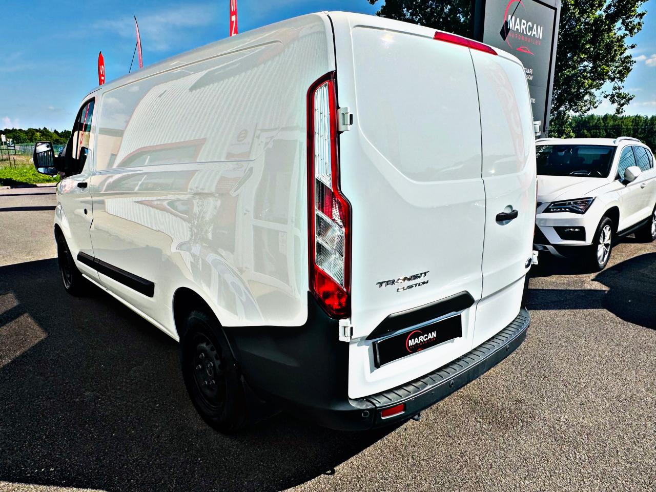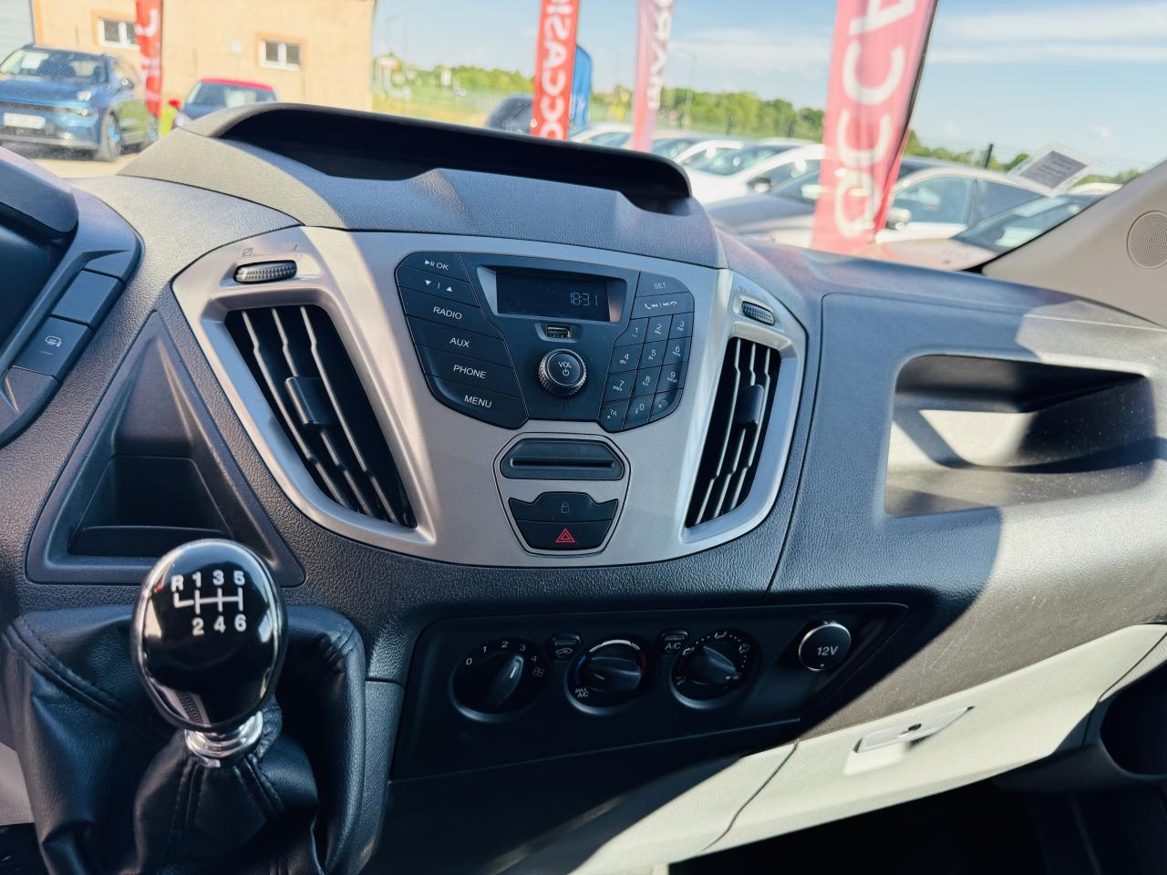 2 porte-bouteilles latéraux intégrés à la planche de bord2 porte-gobelets dans la planche de bordAide au démarrage en côte (HSA)Aide au stationnement avant/arrièreAir conditionné manuel avant avec filtre à pollenAirbag conducteurAlternateur 210 AAnti-démarrage électroniqueArrêt éclairage à 30 minAssistance au freinage d'urgenceBavettes ARBavettes AVBoîte à gants avec couvercle verrouillable pour documents A4Bornes de connexion électriqueCeintures de sécurité 3 points à enrouleur sur tous les siègesChauffage à recirculationConsole de pavillon 1 DIN supplementaireContrôle adaptatif de la charge (LAC)Contrôle dynamique de la trajectoire (ESP) avec ABS et anti patinageCrochets d'arrimage de charge (8 à la norme DIN 75410)Direction assistéeEclairage de courtoisie avec extinction temporisée progressive à l'avantEclairage du compartiment arrièreEnjoliveurs de roueEspace de rangement avec couvercle sur la planche de bord devant le conducteur et les passagerEssuie-glace avant à balayage intermittent variable et lave-glaceExtinction différée des pharesFeux d'angle fixesFeux de freinage d'urgenceFeux de joursFreinage assisté à double circuit, ABS, freins à disques avant et arrièreGarnissage du pavillon de cabineIndicateur de changement de vitessesLève-vitres avant électriques avec ouverture à impulsion côté conducteurNuméro de série visible de l'extérieurOrdinateur de bordOuverture du capot à cléPare-chocs avant couleur carrosseriePoignée de maintien coté conducteur et passagerPorte latérale coulissante droite de chargementPortes arrière tôléesPortes arrières battantes tôlées à ouverture 90°/180°Prises 12V sur tableau de bord et dans boîte à gantsProjecteurs antibrouillardProtection de plancherProtection des panneaux latéraux à mi-hauteurProtections latérales non peintesRange ticket au milieu de la planche de bordRe-verrouillage automatique des ouvrants après 45 secondes (si aucun n'est ouvert)Régulateur/limiteur de vitesse (comprend l'ordinateur de bord et le volant gainé cuir 4 branches aluminium )Réservoir 80 litresRéservoir Adblue et filtre à particulesRétroviseurs extérieurs double vision et répétiteurs de clignotants, réglables et rabattables électriquement et chauffantsRoue acier 15"x 6,5" et pneumatique 215/65R15 BSWSéparation complètes tolées avec trappe inférieur coté passagers (banquette 2 places)Serrures haute sécuritéSiège conducteur à dossier inclinable et appuie-tête réglable, réglable avant/arrière, à assise et hauteur réglables et accoudoir coté droitSignal sonore d'ouverture des portes en roulantSignal sonore de non fermeture des portes lors du verrouillageSystème audio AM/FM, Bluetooth, 2 HP, commandes au volant, prises USB et auxiliaireSystème de protection anti-retournement (ROM)Système de stabilisation en cas de vent latéralTapis de cabine en caoutchouc lavableTrappe à carburant Ford Easy-FuelVerrouillage automatique des portes en roulant au delà de 8 km/hVerrouillage centralisé à commande à distanceVide-poche grandes dimensions dans les portes avantVitres teintéesVolant réglable en hauteur et en profondeur