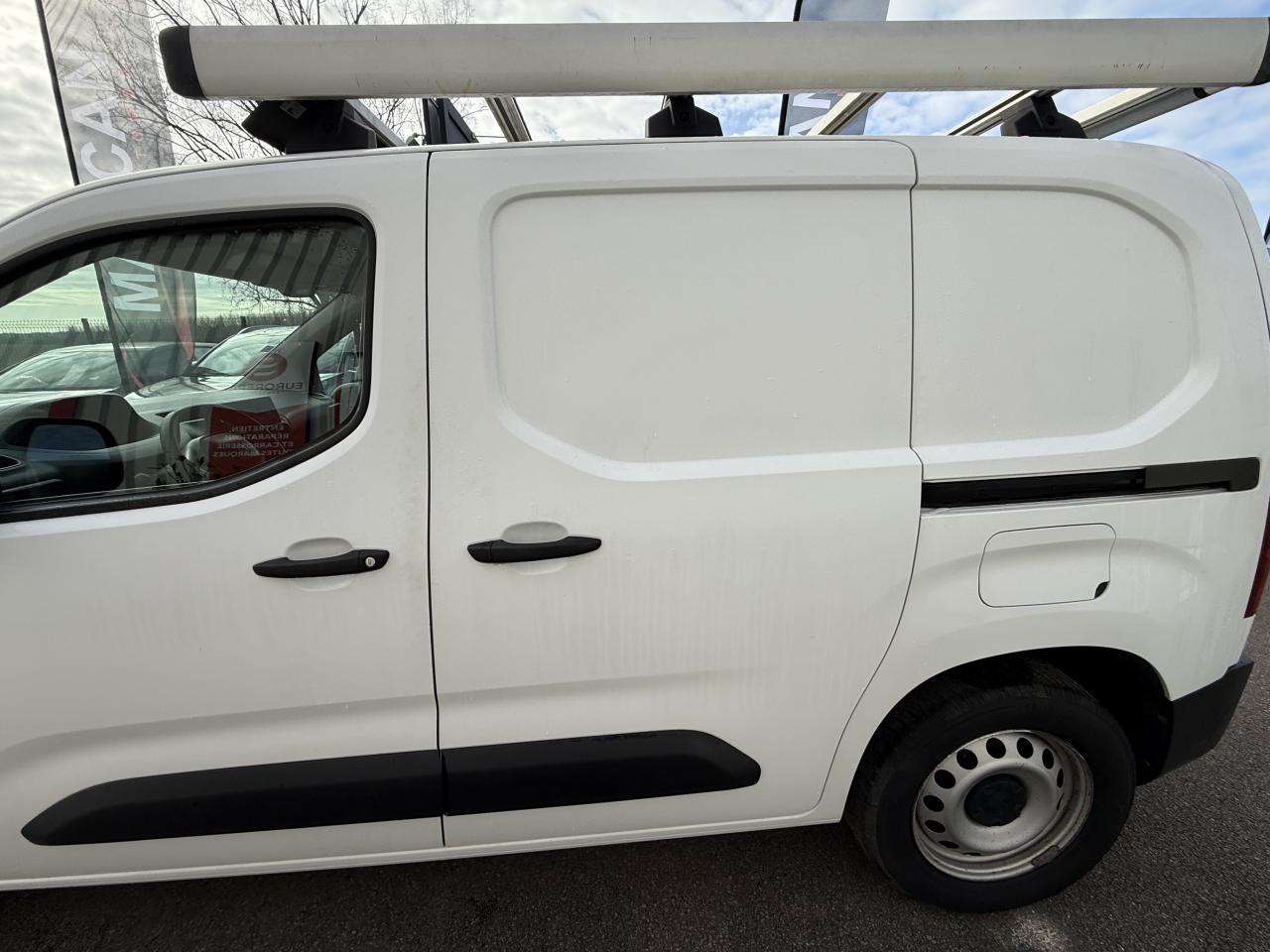 1 plip 3 boutons + 1 clé simple6 anneaux d'arrimage universels sur plancher zone de chargementGalerie de toit aluminiumABS (Antiblocage de roues)AFUI (assistance au freinage d'urgence intelligent)Aide au démarrage en côte "Hill Holder"Air conditionnéAirbag frontal conducteurAllumage automatique des projecteursASR avec push inhibiteur (antipatinage à l'accelération)Baguettes de protection latérale teintées masseBanquette passager 2 places Multiflex avec tablette écritoire orientable, dossier place centrale rabattable, rangement sous assise centrale, place latérale escamotable pour charge longueBoucliers avant et arrière teintés masseCapucineCloison de séparation tôlée fixe avec crochet porte habitCorrecteur électronique de trajectoire (ESC)Détecteurs de sous-gonflageFrein de stationnement électriqueLève-vitres avant électriquesPack ChantierPack Zone de chargementPeinture opaque Blanc BanquisePEUGEOT Connect SOS & Assistance et TéléservicesPorte latérale droite coulissante tôléePortes arrières battantes tôlées 60/40 avec ouverture à 180°Projecteurs antibrouillard avec éclairage statique d'intersectionProjecteurs halogènes avec DRL à lampeRadio Numérique DABRégulateur et limiteur de vitesseRétroviseurs extérieurs électriques et dégivrantsRétroviseurs extérieurs teintés masseRevêtement de sol en TPO dans l'habitacleRoue de secours homogèneSiège conducteur "Confort" avec réglage longueur, hauteur et inclinaison de dossier, réglage lombaire manuel, accoudoirSystème audio RDS MP3 Bluetooth (2HP + 2 tweeters) + 1 prise USB + 1 prise jackVerrouillage centralisé de tous les ouvrantsVolant réglable en hauteur et en profondeur