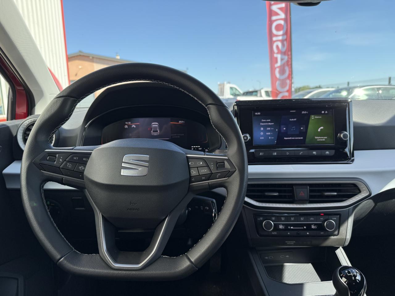 2 lampes de lecture à l'avant2 prises USB-C, Bluetooth3 appuie-tête arrière4 vitres électriques à impulsionABS électronique (système antiblocage des roues)Aide au démarrage en côte (HHC)Airbags frontaux conducteur et passager (déconnectable côté passager)Airbags latéraux avant tête/thoraxAirbags rideauxAlerte de non-bouclage des ceintures de sécuritéAnti-démarrage électroniqueAnti-patinage (ASR)Appel d'urgence - EcallBanquette arrière rabattable 1/3-2/3Ceintures de sécurité à 3 points d'ancrageContrôle de pression des pneus ( TPMS )Correcteur électronique de trajectoire (ESC)Couvre-coffre rabattableDétecteur de fatigueDigital Cockpit : combiné d’instruments entièrement digital de 8”Eclairage d'accompagnement "Follow me Home"Eclairage d'ambiance intérieur LED blanc au niveau de la console centrale et du plancher avantEclairage de plaque d’immatriculation à LEDEntourages d’aérateurs Gris CityFeux arrière LED avec signature lumineuse en triangleFixations ISOFIX et Top Tether sièges arrièreFront Assist avec détection des piétons et des cyclistesFull Link sans fil (Android Auto + Apple CarPlay)Garantie 2 ans, kilométrage illimitéJantes alliage 16" URBAN DESIGNKit anti-crevaisonLane Assistant : assistant de maintien dans la voieLogos "SEAT" satinés à l'avant, à l'arrière et sur le volantOrdinateur de bordPack SpringPack Vision PlusPare-chocs, rétroviseurs et poignées de porte couleur carrosseriePare-soleil avec miroirs de courtoisiePare-soleil conducteur avec pochette porte-cartesPeinture Bleu FjordPlanche de bord moussée avec insert Gris NASAProjecteurs antibrouillardProjecteurs Full LED avec signature lumineuse en triangleRégulateur et limiteur de vitesseRétroviseurs extérieurs réglables électriquementRétroviseurs latéraux, avec clignotants intégrésRadio Numérique DABSEAT ConnectSellerie textile grise COMO à poisSiège conducteur réglable en hauteurSièges confortSign Assist (reconnaissance des panneaux de signalisation)Signature “Ibiza” manuscrite sur le hayonSystème d'info-divertissement MediaSystem+ avec écran tactile 8,25"Tapis de sol textile à l'avant et à l'arrièreVerrouillage centralisée avec télécommandeVolant sport cuir multifonction à méplat